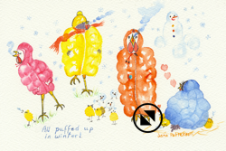 This selection is made up of works that don’t fit neatly into the other galleries… they might be paintings of a more frivolous or light hearted nature or more whimsical works using mixed media with watercolour.